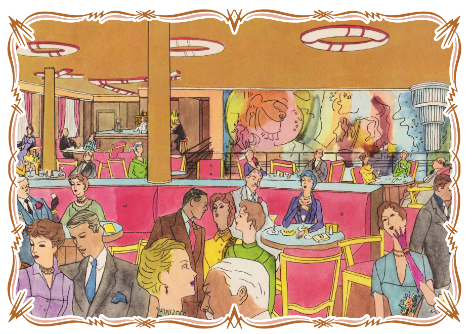 After the war, the French Line recognized that their ship had earned enormous goodwill around the world, and invested in a top-to-bottom renovation. The result was a second golden age: fresh interiors, a new profile, and a renewed place in popular culture. Once again she was the ship of choice for artists, politicians, and celebrities, featured in Broadway shows and Hollywood films—a postwar symbol of France’s resilience and style.